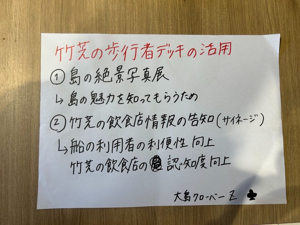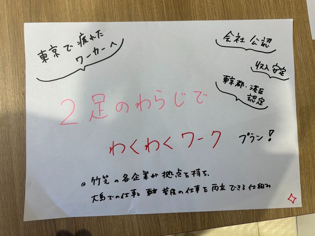 どのアイデアにも、竹芝の視点と島での体験が掛け合わされ、今後の連携の可能性が具体的に描かれていました。