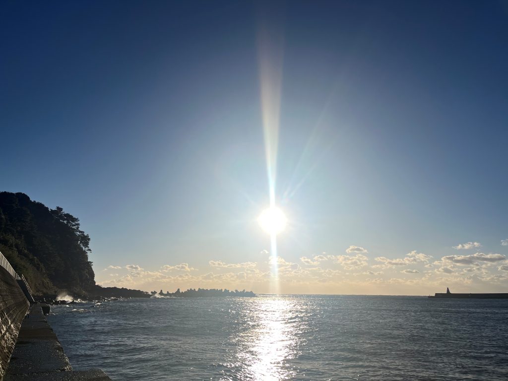波浮港から臨む朝日